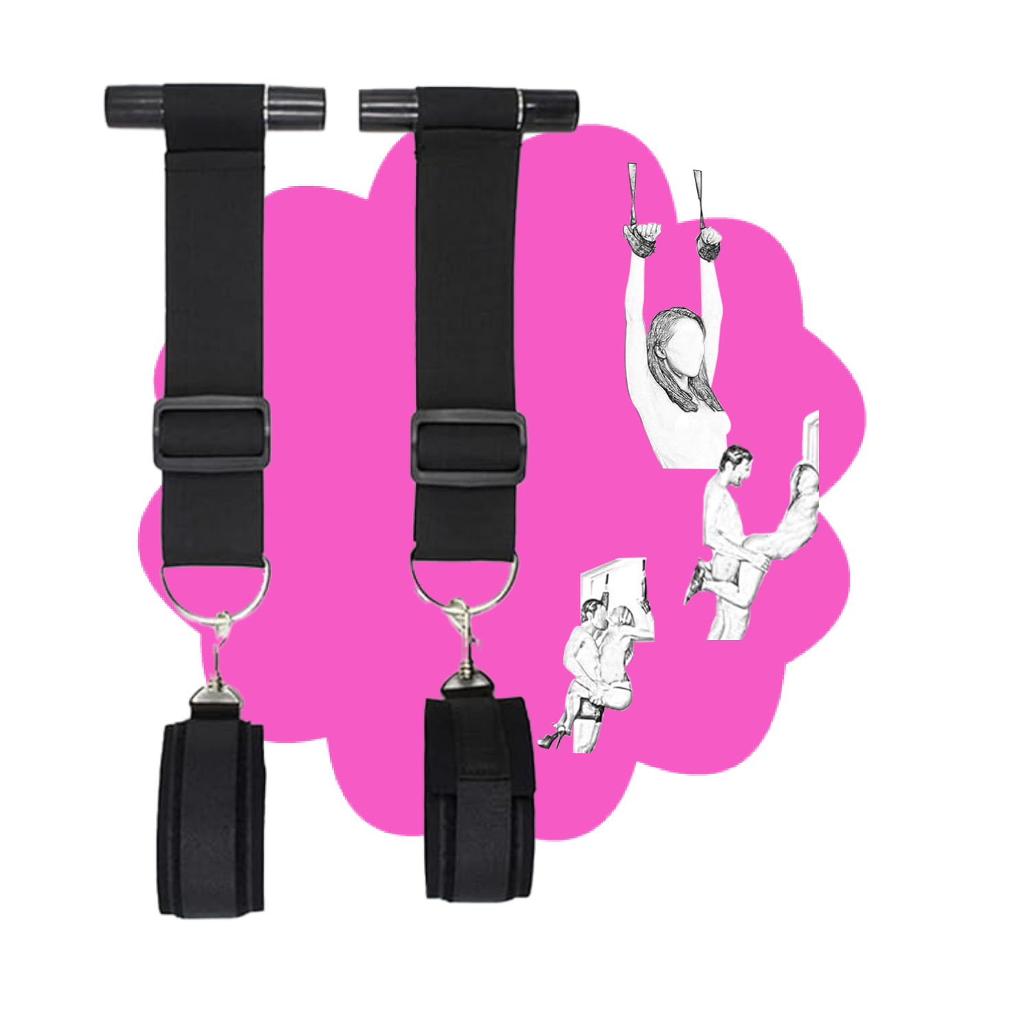 Surrender to irresistible pleasure with the Door Hanging Swing Straps. Designed for those who crave excitement and adventure, these restraints let you explore new, daring positions that will leave you breathless. With the ability to swing back and forth, you’ll enjoy a wild range of motion, making every touch and movement feel electric. The soft, skin-friendly materials of the handcuffs ensure comfort while keeping you secure, allowing you to lose yourself in the moment. Whether you’re at home or away, these portable straps are perfect for a spontaneous rendezvous, slipping easily into your suitcase or pocket. From seductive slave/master fantasies to thrilling bondage play, the adjustable cuffs fit most bodies, giving you the freedom to explore and indulge in your deepest desires. Simple to use, this kit will turn any door into a doorway of untamed passion.